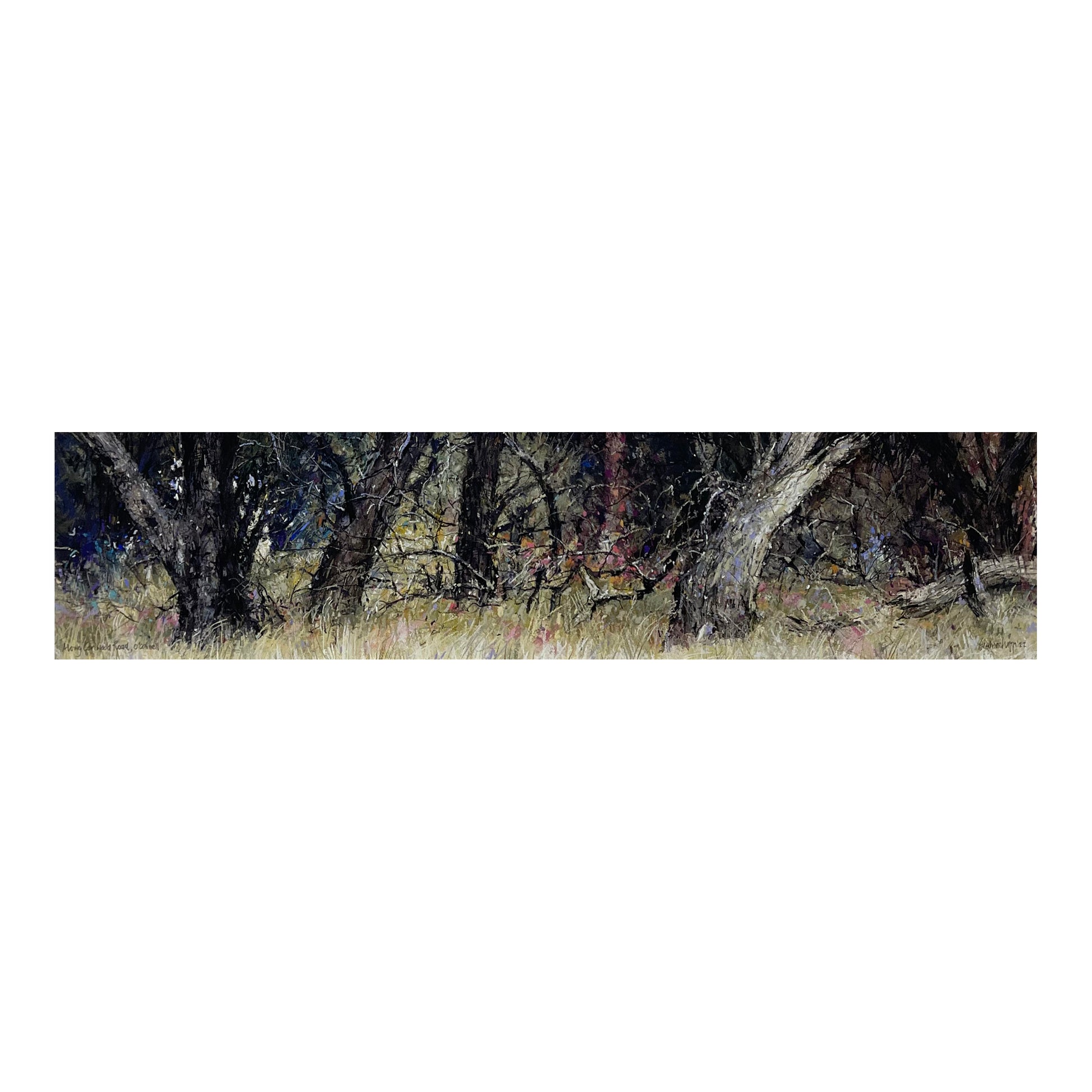 "The work I have been undertaking in recent years looks at certain elements of the Australian landscape around Bathurst district where I have lived most of my life. It is only through a gradual, lifelong familiarity that I have become aware of a mysterious, inexplicable 'otherness' that exists behind the visual immediacy of being in the bush. Of course, this is inherently understood by our First Nations people as explained to me by one of our local Wiradjuri elders and good family friend. As a result, I am currently exploring, in paint, pastels and drawing, a more evocative approach to my surroundings."