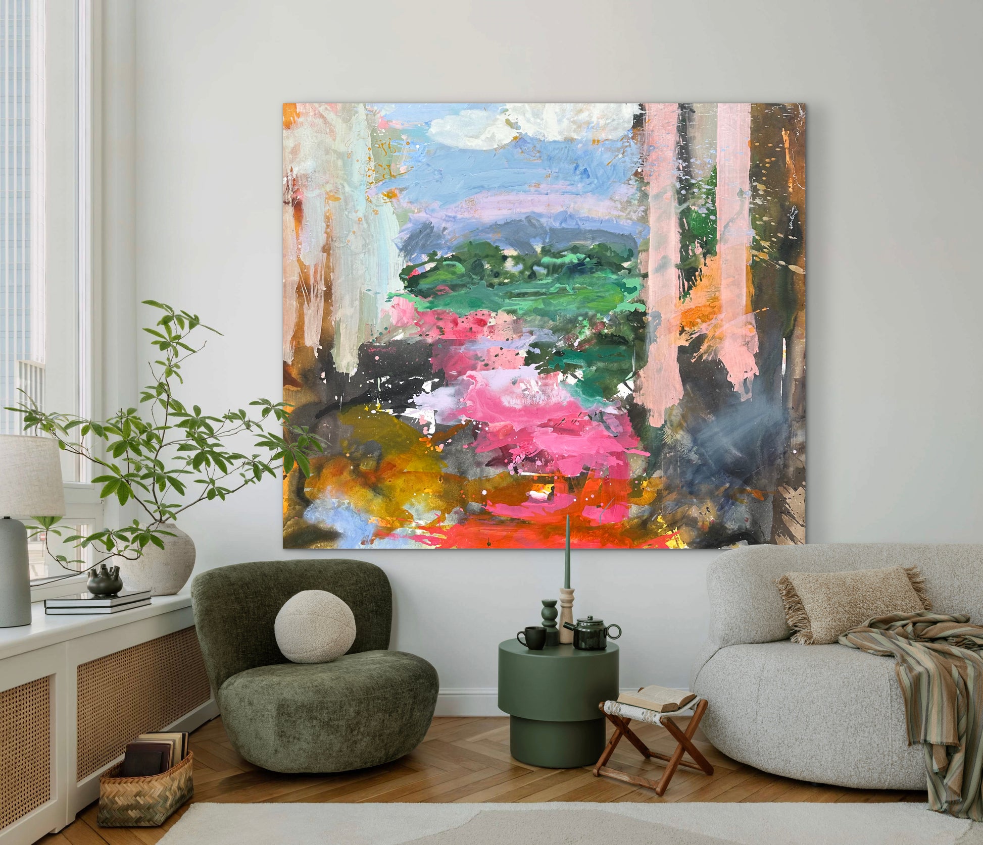 Acrylic on linen framed in oak